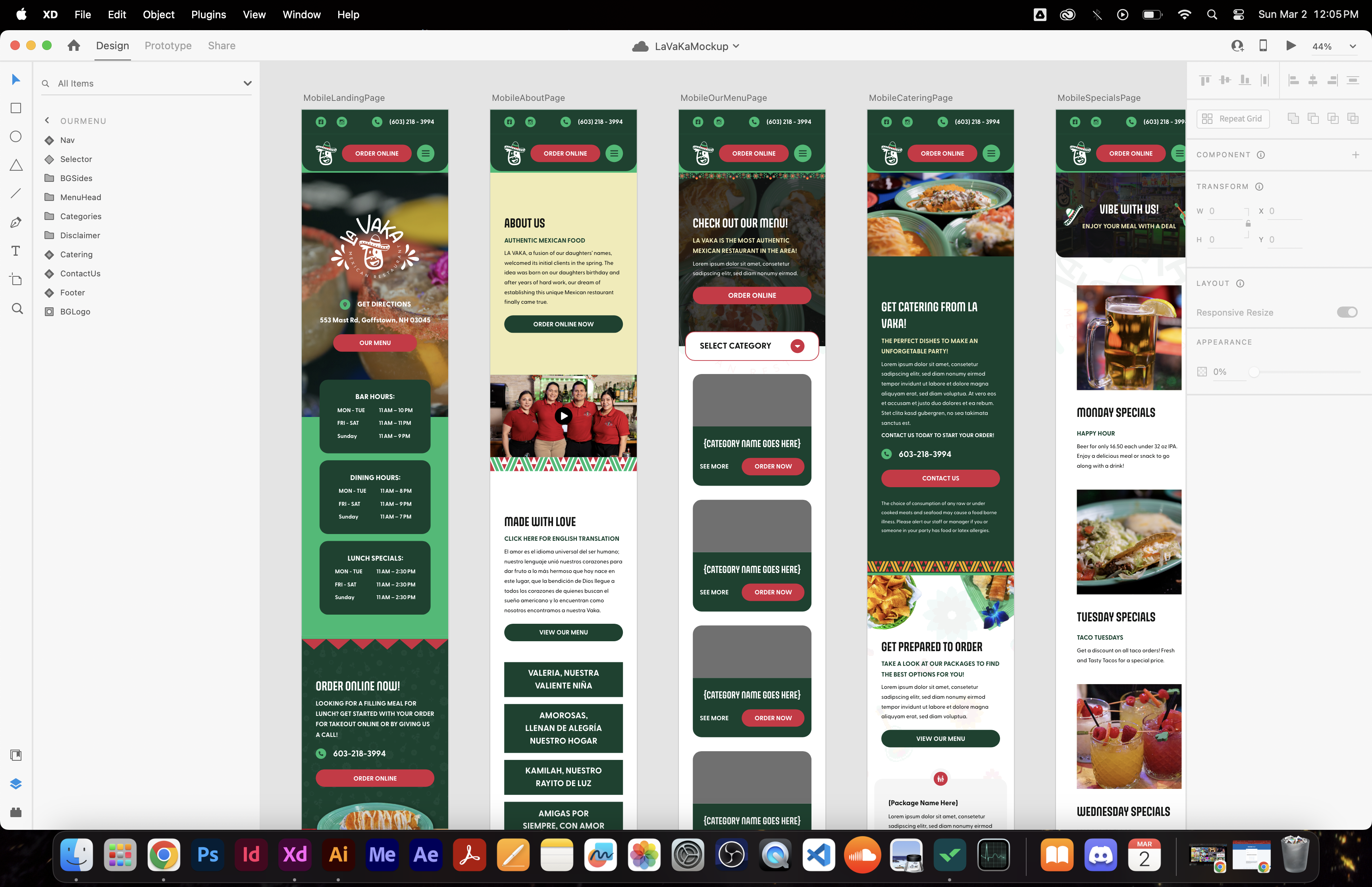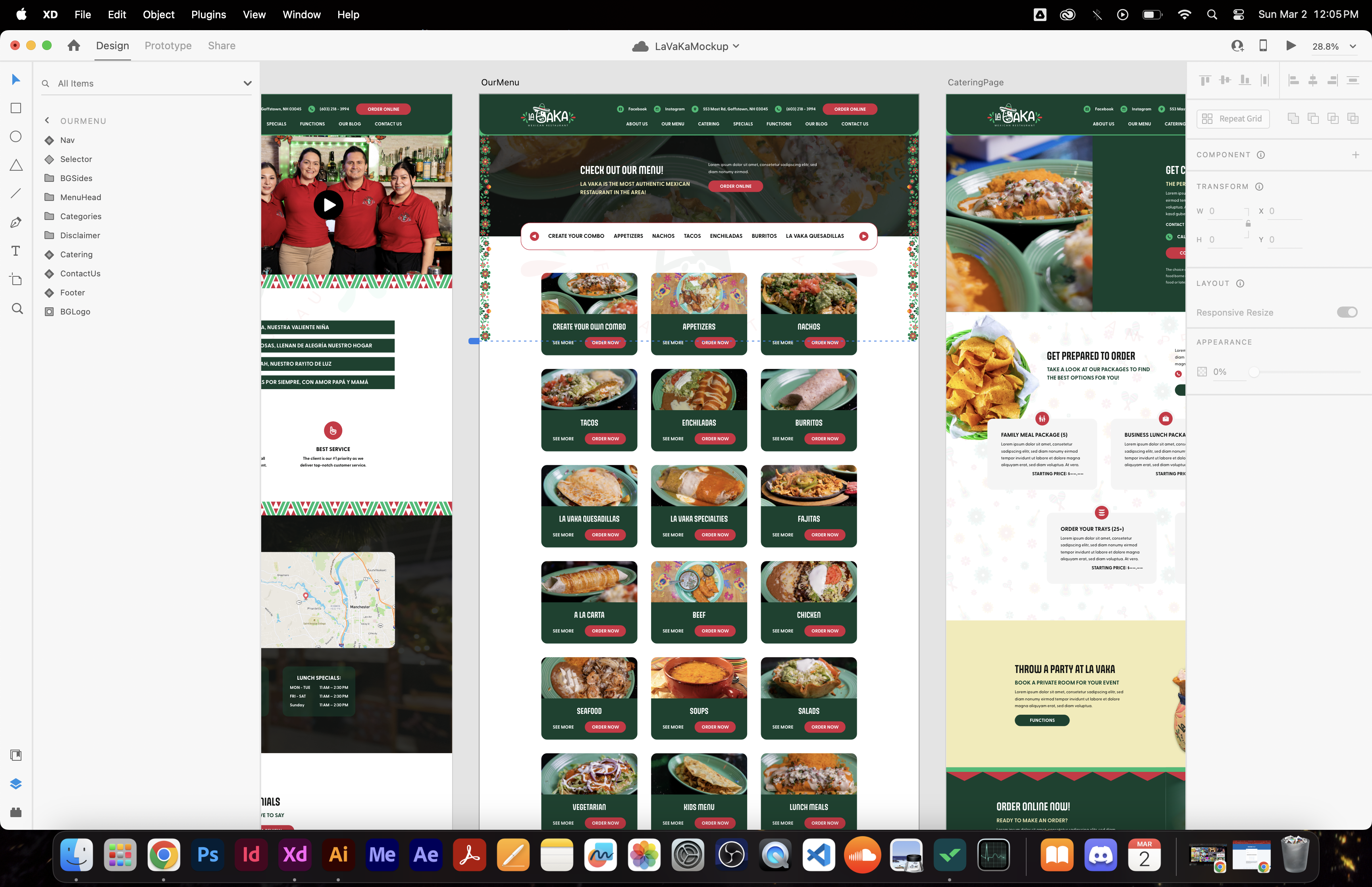 La Vaka is a authentic restaurant serving mexican cuisine. One of the few clients that provided their logo and had some branding guidelines made. I created the website mockup and improved on their branding guidelines. I also recreated some of their design elements. The menu items / page design is one of my favorite creations. Because I had photography to use (which I usually dont have at the start of designing), I was able to make both the menu items on the homepage and the menu page visually appealing / engaging in the mockup. I also think it's nice for food companies to have an image of as many of their dishes as possible. When I have the imagery beforehand, i'm able to make cut-outs in photoshop of their actual meals which I believe helps customers way more than looking at stock imagery.
